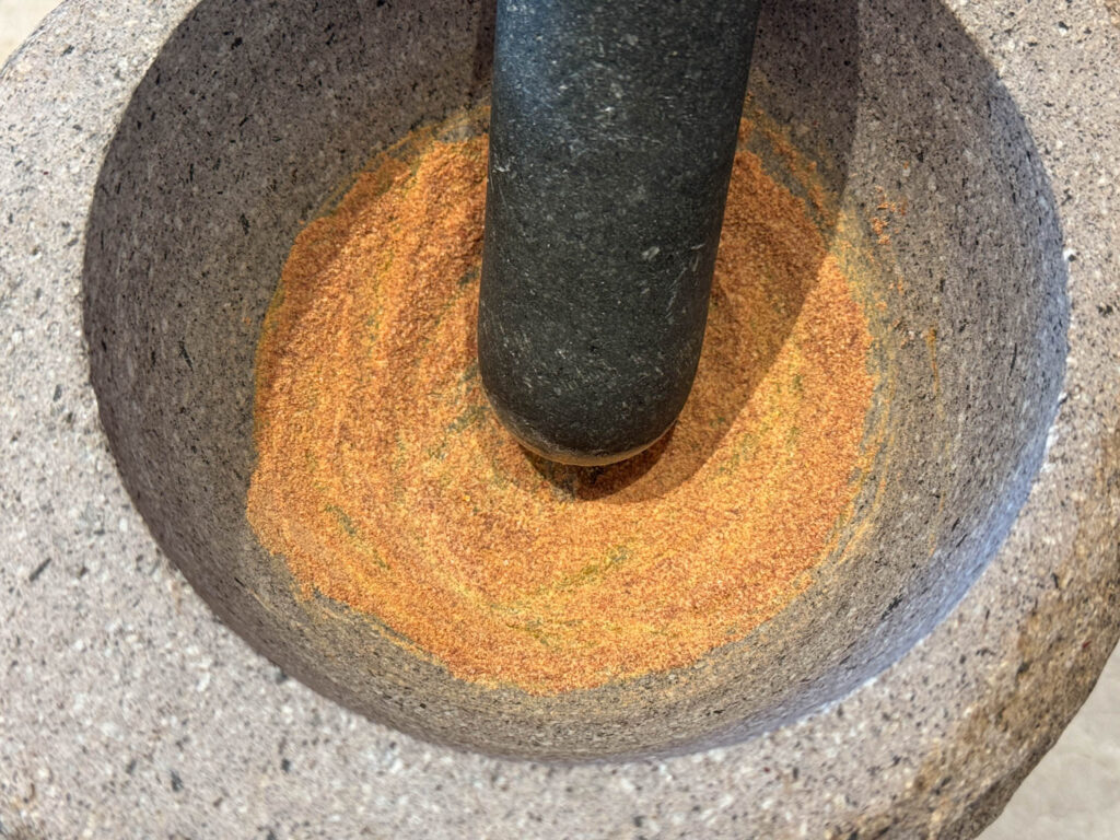 3. Mortla saffran tillsammans med lite strösocker.